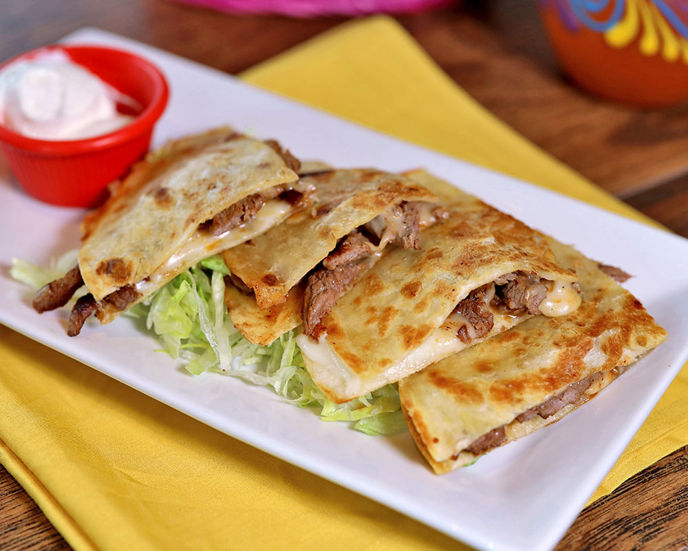 One 7” flour tortilla filled with cheese and shredded beef or marinated chicken.