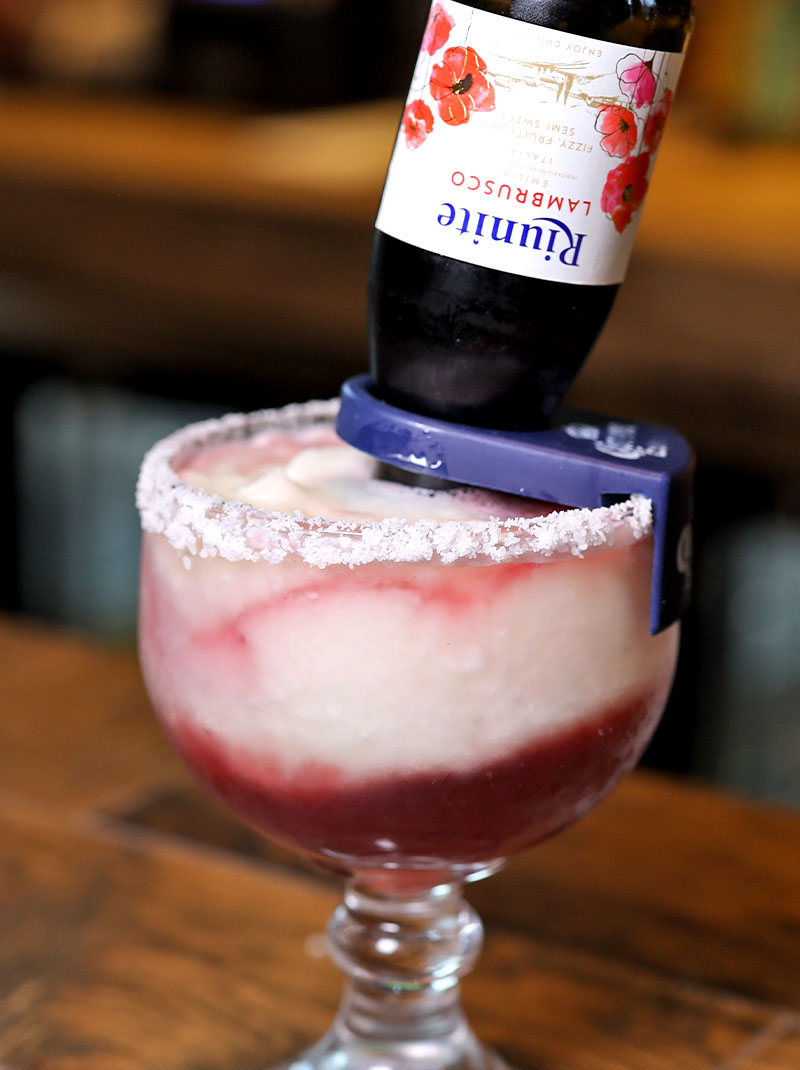 This bold Hornitos Reposado margarita is packed with fruity flavors and a unique, striking black color derived from the combination of blue curacao and chambord liquer.