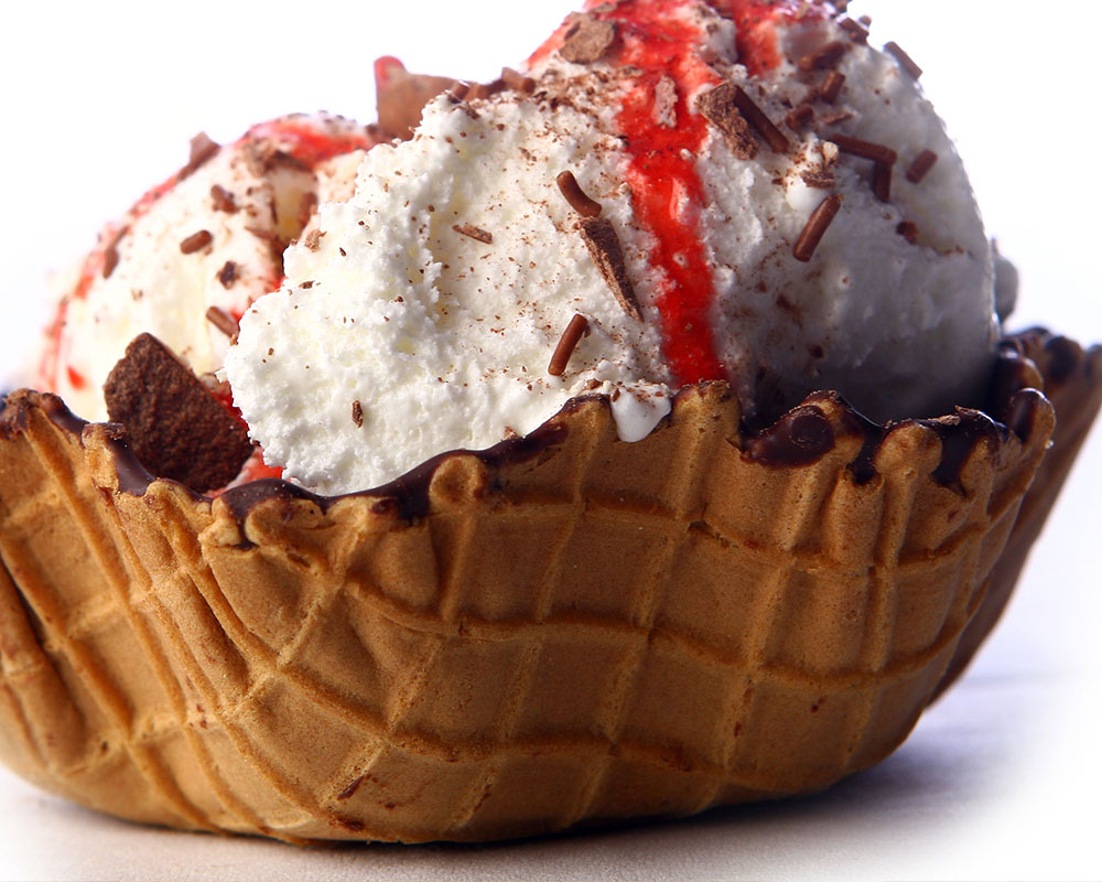 A vanilla ice cream ball coated in frosted flakes and then lightly fried. Served inside a crispy flour tortilla bowl, topped chocolate, whip cream and a maraschino cherry.